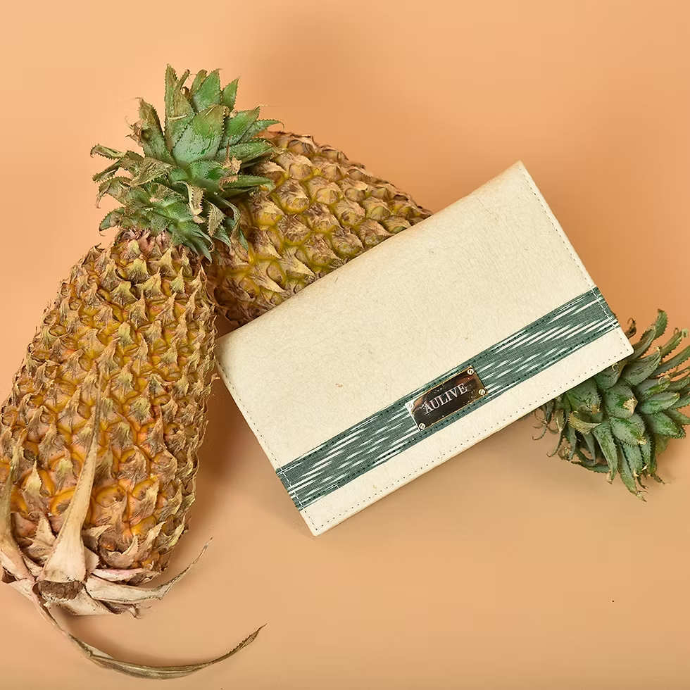 For accessories, Aulive, founded by Yashraj Rathor and Wamika Shekhawat, crafts vegan handbags from pineapple leaves (Piñatex) and plant-based Italian leather, merging elegance with environmental mindfulness.