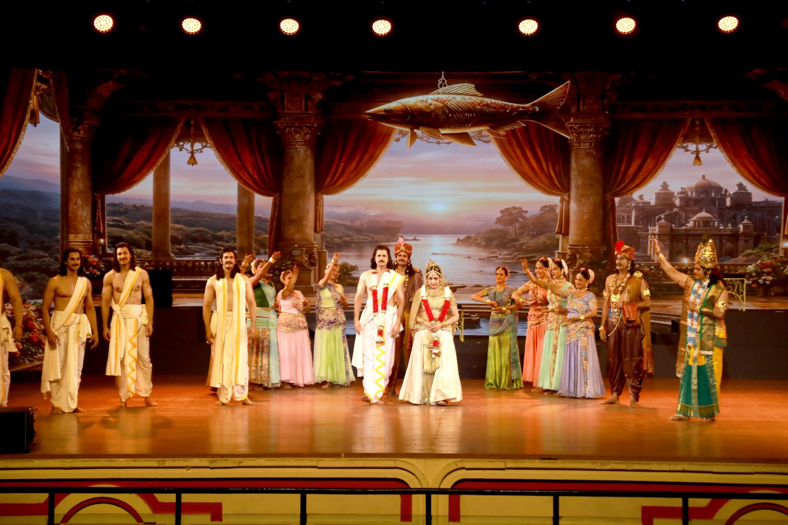 Visually, the production is nothing short of spectacular, with Academy Award-winning designer Bhanu Athaiya crafting the costumes, alongside Neeta Lulla for Hema Malini’s exquisite ensembles. The immersive sets by Omung Kumar, complemented by Sudhir Arts’ properties and the dramatic lighting by Light Impressions (Dhiren Merchant), create a rich, atmospheric canvas.