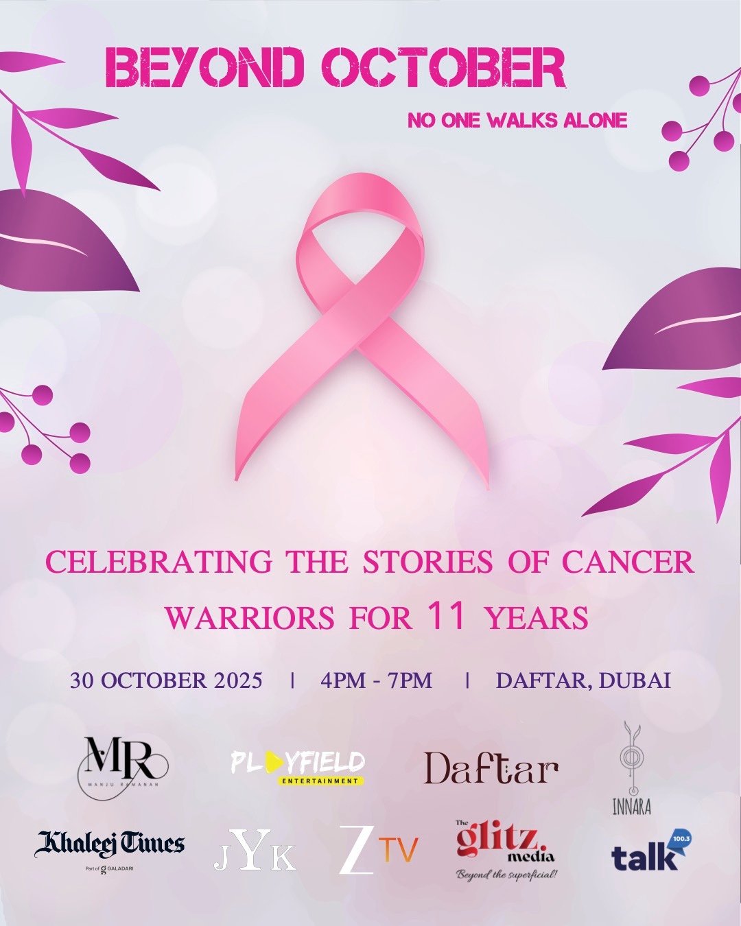 The “Beyond October: Think Pink. Live Green” campaign, founded in 2014 by journalist and author Manju Ramanan, has evolved into a powerful platform that not only raises awareness about breast cancer but also promotes sustainable living. The initiative began as the “Can Defeat Cancer” campaign and has since grown, hosting events at various venues in Dubai, including Beauty Connections Spa, Danube Home, Radisson Blu, Crowne Plaza Dubai Marina, and Gargash Hospital. TheGlitz Media is proud to be the media partner in this noble endeavour.